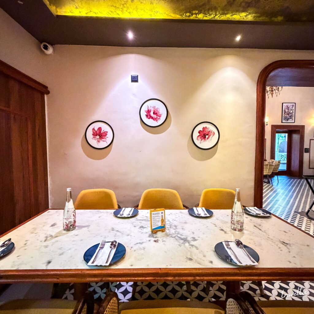 Walking into Jugnu is like stepping into a curated art gallery that meets an intimate dining sanctuary. The restaurant beautifully preserves the character of its 160-year-old Portuguese structure while infusing it with contemporary design elements that feel natural and welcoming.